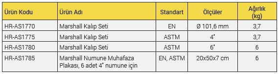 Marshall Sıkıştırma Kalıpları, Otomatik veya Manuel Marshall Kompaktörler ile Marshall numunelerini hazırlamak için kullanılmaktadır.