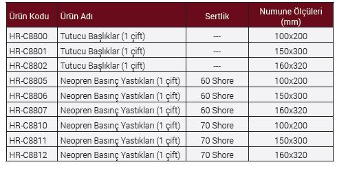 Yüzey düzensizlikleri olan numunelerde bile, deney yükünü muntazam olarak dağıtarak güvenilir deney sonuçları alınmasını sağlayan Neopren basınç yastıkları, deneylerde pek çok kez tekrar kullanılabilmektedir.