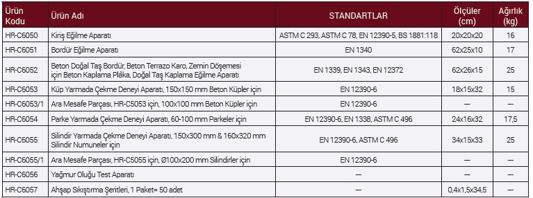 Eğilme Test Gövdeleri, eğilme, kırılma yükü, yarmada çekme, basınç v.b. deneyler için gerekli tüm aksesuarlarla birlikte çalışabilmektedir.