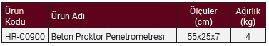 100 kgf kapasiteli, 1 kgf hassasiyetli Yay tipi yükleme sistemli penetrometre ve 16-32-65-160-325-650 mm² alanlı 6 adet değiştirilebilir paslanmaz çelik iğne setinden oluşmaktadır.