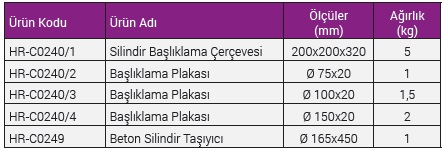 Ø 100 ve Ø 150 mm silindir numuneleri için Başlıklama Plakaları ile birlikte verilmektedir.