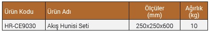 Üst çapı 150 mm ve yüksekliği 280 mm olan, paslanmaz çelik huniyi destekleyen bir metal stand ve bağlantı bileziği içermektedir. 10 mm’lik Akma ucu takıldığında toplam yüksekliği 350 mm olmaktadır.
