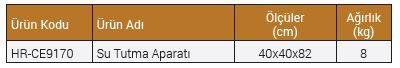 Su Tutma Aparatı; stand, su aspiratörü, vakum regülatörü, vakum göstergesi, üç yollu musluk, metal delikli çanak, cam huni, lastik conta, filtre kağıdı ve erlenmayer ile birlikte set olarak verilmektedir.