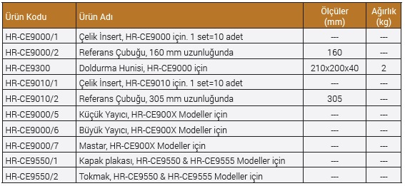 HR-CE900X Modeller için Küçük Yayıcı, Büyük Yayıcı ve Mastar ayrıca sipariş edilmelidir.