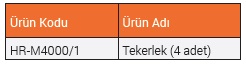 Tekerlekler, opsiyonel olarak mevcuttur ve ayrıca sipariş edilmelidir.