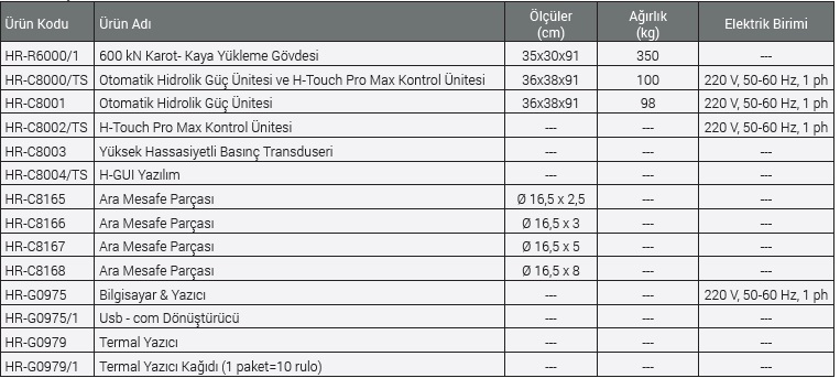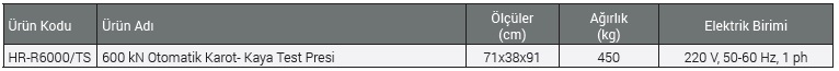 Otomatik 600 kN Kapasiteli Karot-Kaya Test Presi, karot ve kaya numunelerinin dayanımınlarının güvenilir ve tutarlı bir şekilde test edilmesi için tasarlanmıştır. Cihaz, yukarıda yazılan tüm EN, ASTM ve BS standartlarına ve aynı zamanda operatörün güvenliği ve sağlığı açısından CE normlarına da uygun olarak üretilmektedir.