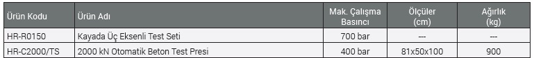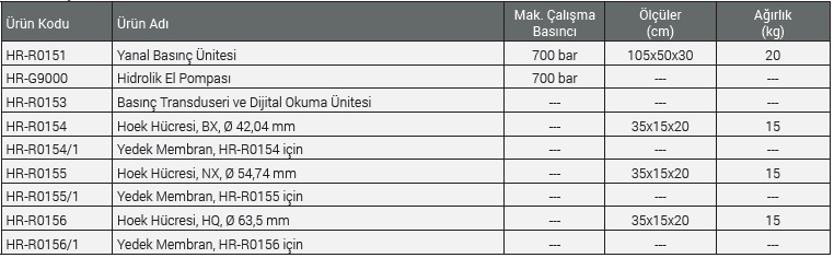 Manuel Basınç Sistemi, herhangi bir Hoek üç eksenli Hücresi ve 2000 kN Otomatik Beton Test Presi ile kullanılmaktadır. HR-C2000 yerine başka bir model HİRA Test Presi de kullanılabilmektedir.