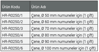 50 mm'lik numuneler için bir çift çene ile birlikte verilmektedir.