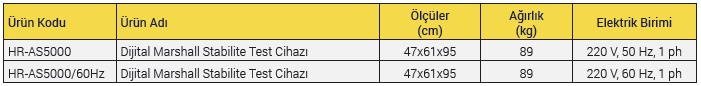 LCD Marshall Kontrol Ünitesi, 50 kN kapasiteli Yük Hücresi, 25 x 0.01 mm Uzama Sensörü, Ø 4 "Marshall numuneleri için ve Kırma Başlığı (Stabilite Kalıbı) ile birlikte verilmektedir.