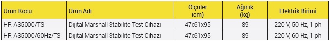 HR-AS5000/TS 50 kN kapasiteli Dijital Marshall Stabilite Test Cihazı, bitümlü karışımların maksimum yük ve akma değerlerini belirlemek için kullanılmaktadır.