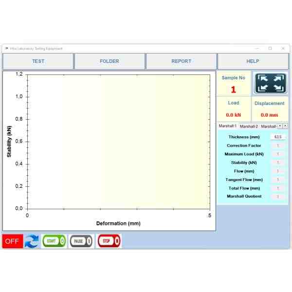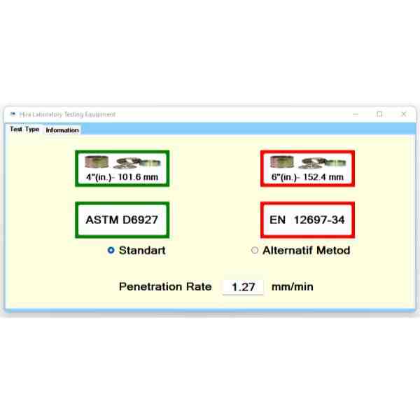Yazılımda Test tipi seçilir ve ardından numune yüksekliği deney parametresi olarak girilir. Standartlara uygun olarak, numune boyutuna ait düzeltme faktörünü otomatik olarak hesaplar. Stabilite değeri hesabında bu değer dikkate alınır.