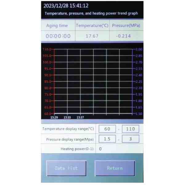 Yaşlandırma sürecinin sıcaklık hata süresi ve basınç hata süresinin gerçek zamanlı görüntülenmesi (yeni spesifikasyonun gereksinimlerini karşılamak için);