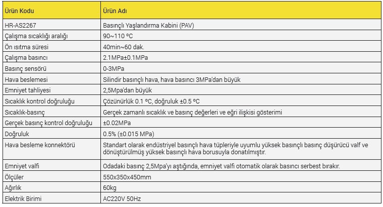 Asfalt Basınçlı Yaşlandırma Kabı (PAV), asfaltın iklim ve trafik yükü etkisi altında uzun vadeli yaşlanma sürecini simüle etmek, farklı asfaltların belirli test sıcaklığı ve basınç koşulları altında antioksidan yaşlanma yeteneğini değerlendirmek ve performans testleri için yaşlandırılmış asfalt numuneleri sağlamak için kullanılır.