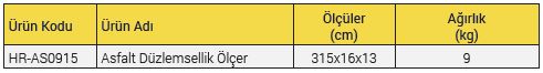 Eloksallı alüminyum alaşımlı olarak üretilen bu cihaz, yol döşemesi, zeminler, beton kaldırımların düzensizliklerini ölçmek için kullanılmaktadır. Uzunluğu 3 m'dir.