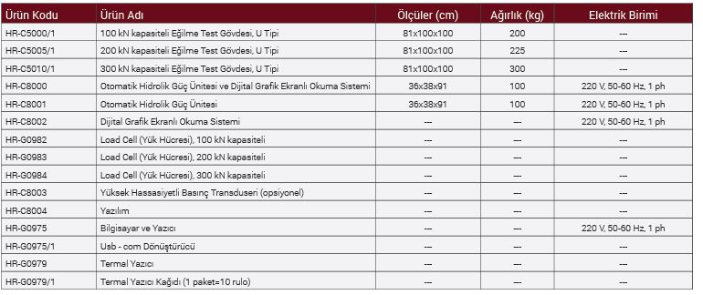 Eğilme Test Gövdelerinin U Tipi 100 kN, 200 kN, 300 kN kapasiteli olarak farklı seçenekleri mevcuttur.