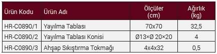 Yayılma Tablası Konisi ve Ahşap Sıkıştırma Tokmağı ile birlikte verilmektedir.