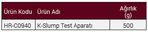 K-Slump Test Aparatı, taze betonun sıkıştırma derecesini ve işlenebilirliğini belirlemek için kullanılmaktadır. Bu Aparat, test kalıpları ve formlarındaki betonun yerinde ölçümleri için kullanılabilir ve standart Slump testi ile ilişkilendirilebilir.