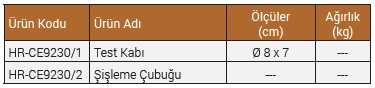 Ø 8 x 7 cm Test Kabı ve Şişleme Çubuğu ile birlikte verilmektedir.