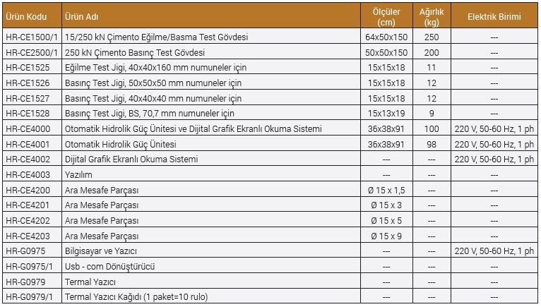 Otomatik Çimento Eğilme / Basma Test Presi aşağıdaki parçalardan oluşmaktadır;