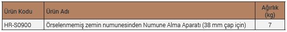 Örselenmemiş zemin numunesinden Numune Alma Aparatı; TY-kolu, Uzatma çubuğu, numune çıkarıcı bağlantısı, 38x230 mm uzunluğunda paslanmaz çelik numune tüpünden oluşmaktadır.