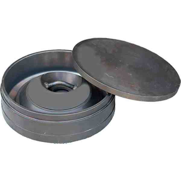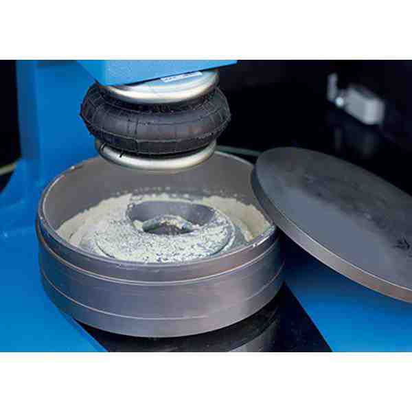 Pnömatik Diskli Öğütücüde Çelik Öğütme Seti ile öğütme haznesini titreştirerek hazne içinde bulunan bir disk vasıtası ile öğütme işlemi yapılmaktadır.