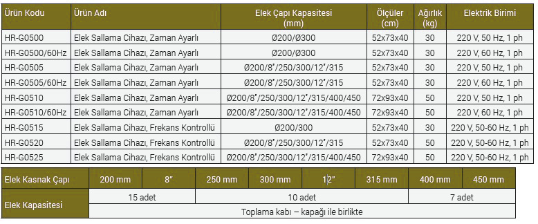 HR-G0515, HR-G0520, HR-G0525 serisi Elek Sallama Cihazları, ek olarak Frekans Kontrollüdür.