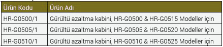 Gürültü azaltma kabini ayrıca sipariş edilmelidir.