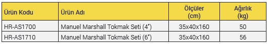 Manuel Marshall Tokmak, Marshall numunelerini elle, manuel olarak sıkıştırmak için kullanılmaktadır.